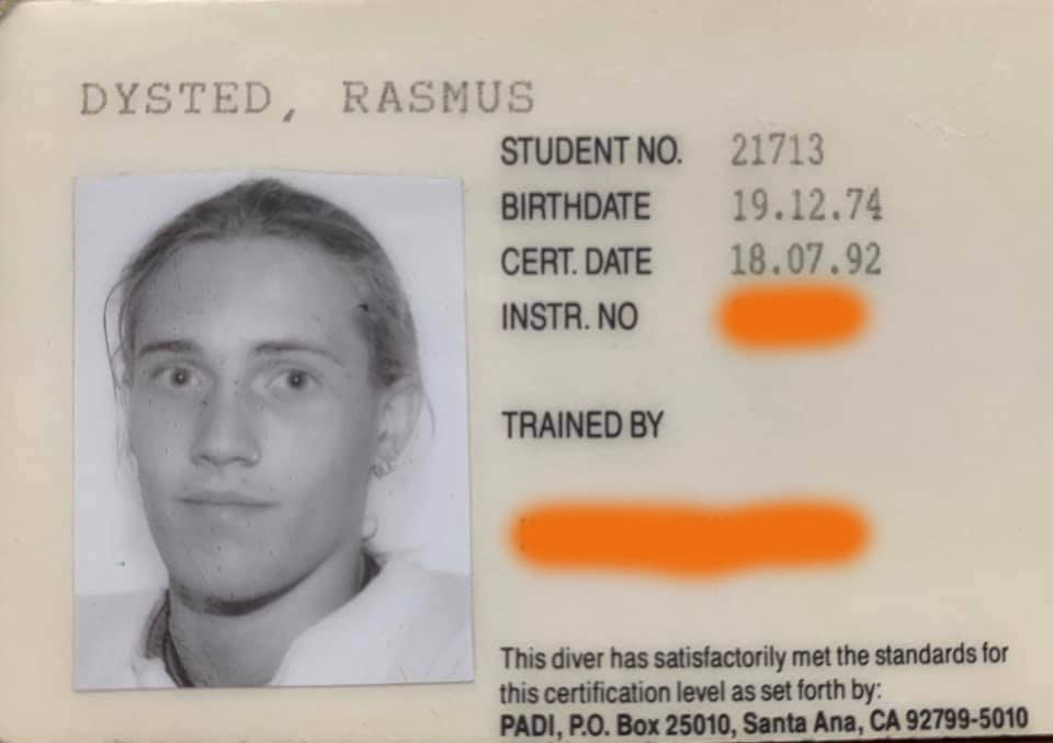 Rasmus lærte og dykke i ´’92 og igennem hans arbejde som butiks og skolechef i en dykkerskole i Århus, blev han dykkerinstruktør i ’94.